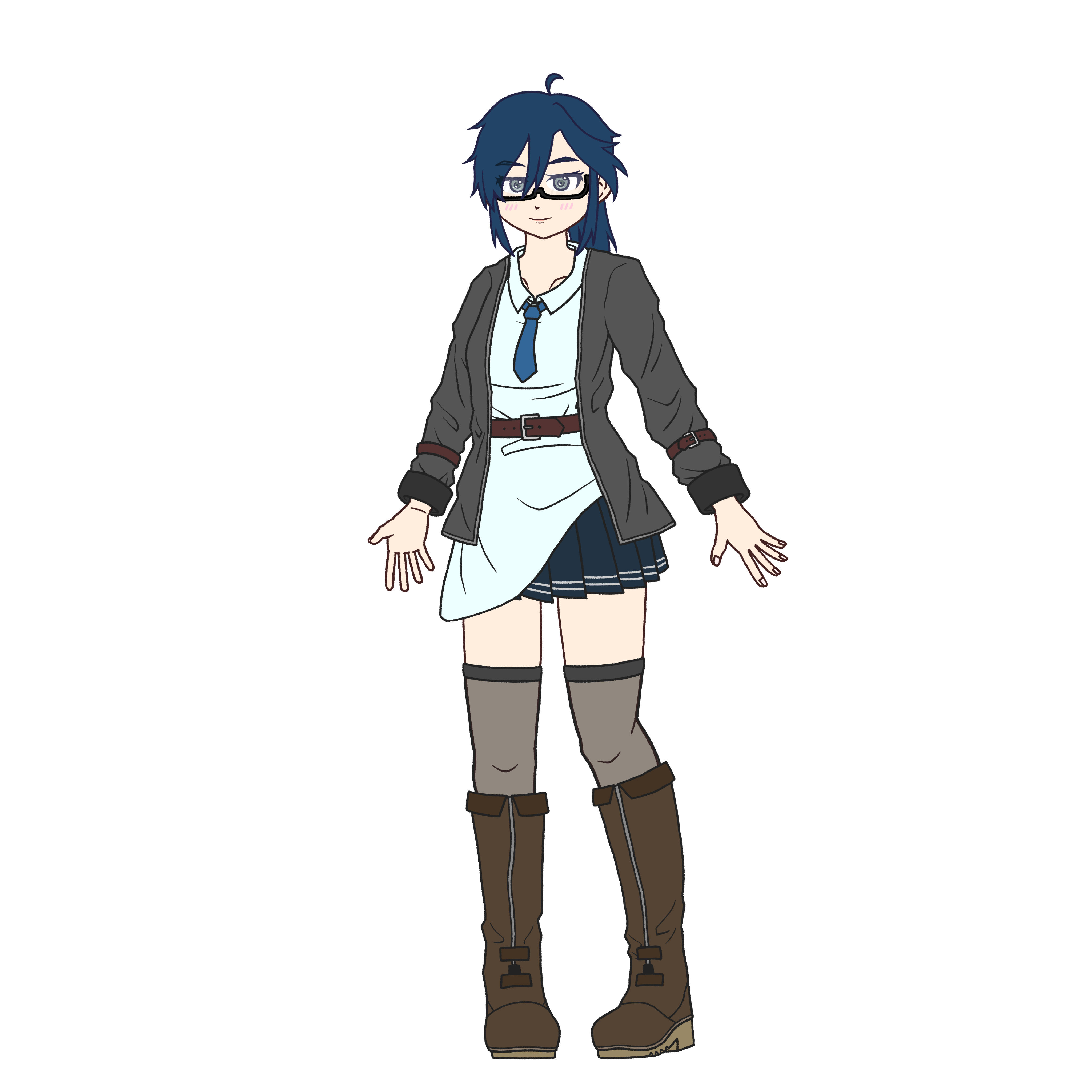 She is a time traveler who has come from a slightly distant future. Possessing exceptional physical and intellectual abilities, she is particularly well-versed in astronomy and mathematics. Brave and composed, she tackles any crisis with patience, though there are moments when she can be caught off guard. With her deep blue hair, resilient skin, and keen sensory organs, she shows no signs of aging and will continue to live forever as a vibrant 20-year-old. The glasses she always wears are not for vision correction but are high-performance computers (comparable to modern AR glasses), serving as a guide to navigate through various eras and as a camera to document the history she witnesses. While she currently leads an active life in bold attire, it is said that she was forced to live a quiet life as a noble citizen until her adolescence.